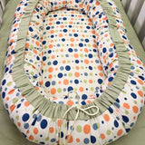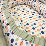 Charmoso e alegre, o ninho redutor com estampa de bolinhas traz um toque lúdico ao enxoval.